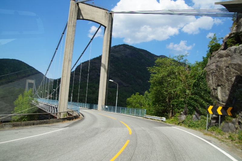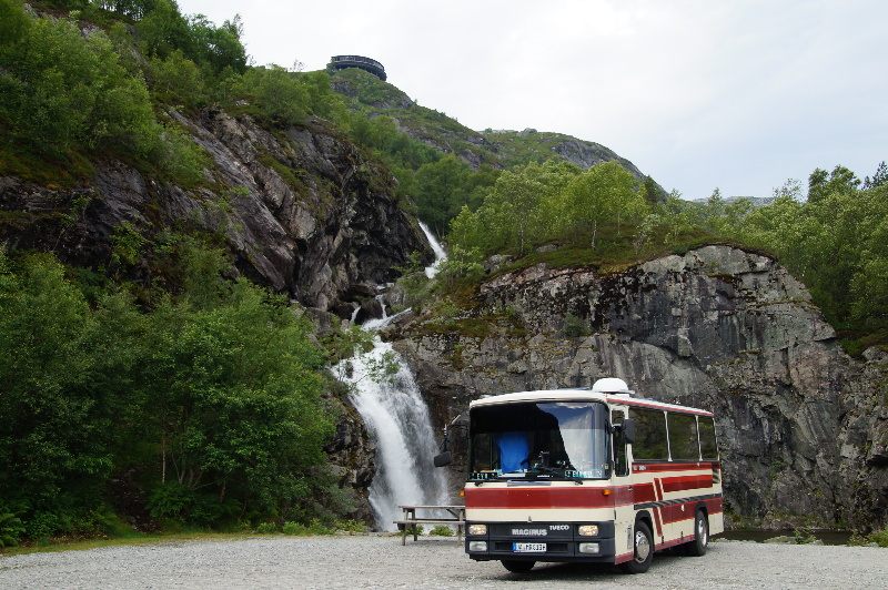 Wir stehen auf, als das Schiff kommt. Wir haben direkt gegenüber der Anlegestelle gestanden. Nach dem Frühstück starten wir für die 33 km Abenteuerstrecke. Wir machen viele Fotostops. (Das muss der Trollstiegen erstmal toppen). Das nächste Ziel ist Stavanger. Auf dem Weg dorthin haben wir ein Hinweisschild "Manavossn" gesehen. Ein Wasserfall, auf den extra hingewiesen wird, muss wohl was besonderes sein. Wir biegen also ab, durch einen Tunnel und dann noch 8 km. Der Parkplatz kostet 20 NOK. Vertrauenskasse! Man steckt das Geld in einen Umschlag, schreibt die Autonummer drauf und wirft das in eine Box. Jetzt noch Brot suchen, damit wir Proviant für den nächsten Tag haben. Auf dem Weg zum Preikestolen müssen wir mit einer Fähre Übersetzen. Das kostet 195 NOK. Auf den Preikestolen Campingplatz (riesengroß) wollen wir nicht und fahren erstmal hoch zum Parkplatz. Hier darf man nicht übernachten. Es kostet 100NOK. Wir beschließen wieder runter in den Ort zu fahren. Es gibt nicht wirklich eine Gelegenheit, so stellen wir uns in einem Industriegebiet an den Straßenrand. Wir wollen ja morgen um 7 los, um dann oben auf dem Parkplatz zu frühstücken. |