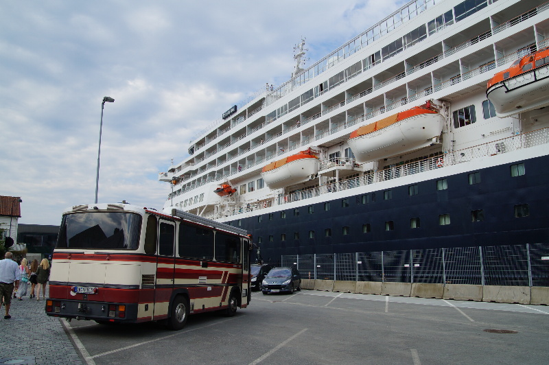 Wir fahren in Jondal mit der Fähre über den Hardangerfjord. Ziel ist Bergen. In Jondal steht die Fähre verlassen mit runtergelassenem Schlagbaum rum. Also steigen wir aus und sehen nach dem Fahrplan. Ok, bis 9:40 können wir warten. Nebenan ist ein Supermarkt mit Automatentankstelle (ist ja Sonntag). Also die Zeit genutzt und noch vollgetankt. Auf dem weiteren Weg nach Bergen haben noch einen Wasserfall besichtigt. In Bergen zu parken ist nicht so einfach. Nach einer unfreiwilligen Stadtrundfahrt parken wir an dem zukünftigen Hurtigrutenkai. Hier dürfen Busse von 10 - 17 Uhr stehen (für 2 Stunden). Wir laufen vorbei an Bryggen und fahren mit der Bahn hoch zum Floyen (85NOK hin und zurück pro Erw.) Es lohnt sich. Man kann sonst nur zu Fuss rauf. Die Aussicht ist toll. Ok, wenn die Sonne scheinen würde, wäre es noch schöner, aber Bergen ohne Regen ist schon toll. Mit 24 Grad ist es auch angenehm warm. Oben leisten wir uns ein Eis, da wir noch nicht zu Mittag gegessen hatten. Wieder unten gehen wir noch durch den Fischmarkt. Da wir noch bald ablaufende Lebensmittel dabei haben, widerstehen wir der Versuchung. Am Hafenbecken gehts dann zurück zum Bus. Nach dem Mittagessen bleiben wir noch etwas stehen und nutzen die top Internetverbindung. Gegen 17:30 fahren wir weiter (bzw. einen Teil der Strecke zurück) Richtung Flams. In Voss stellen wir uns auf einen grossen Parkplatz. Ab 9 Uhr muss man dann zahlen. Die Hinterräder in der Regenrinne sorgen dafür, dass wir nicht zu schräg stehen. Fernsehen gibts allerdings nicht, die Bäume sind zu hoch. Macht aber nix, Fussball interessiert uns eh net und ob wir Weltmeister werden, sehen wir im Liveticker. |