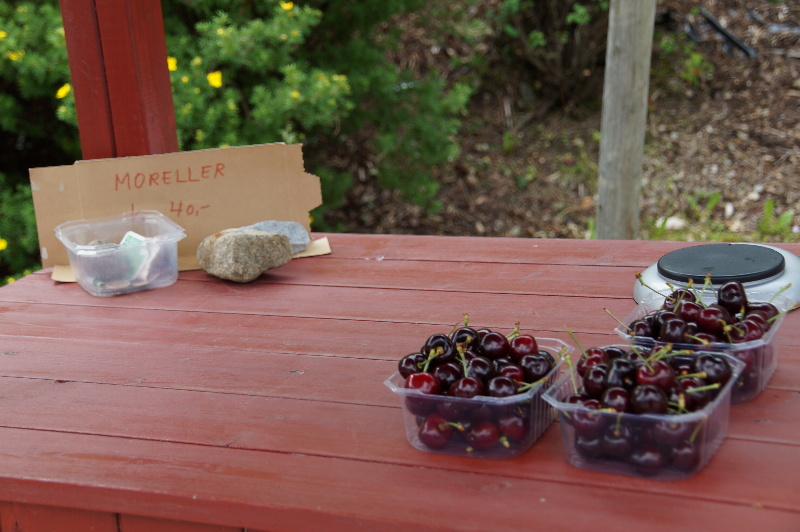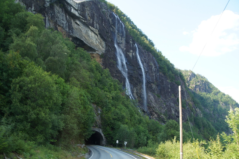 Der Tag startet sonnig bei knapp 20°. Wir fahren weiter Richtung Odda und besichtigen einige Wasserfälle, u.A. den Latefossen. Von Odda folgen wir der 550 am Sogfjord entlang. Dieser mündet in den Hardangerfjord. Entlang des Hardangerfjord kommen wir bis Herand. Dort stellen wir uns neben einem geschlossenen Supermarkt direkt an Wasser. Unterwegs hatten wir frische Kirschen gekauft. Stände gibt es überall an der Strasse, direkt vom Erzeuger. Ein kleines Schälchen kostet 40NOK. In Herand gibt es eine kostenlose Ver- und Entsorgungsstation. Leider parkt ein Durmel so blöd vor der Einfahrt, dass man nicht hinfahren kann. Daneben ist ein Parkplatz, auf dem man gegen Gebühr auch über Nacht stehen kann (zu bezahlen im Kiosk). |