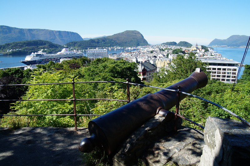 Wir fahren erst mal zum Kiwi Brötchen holen. Zurück an der Pier frühstücken wir. Dank der App sehen wir, dass die Aidaluna um die Ecke parkt. Also fahren wir rüber und müssen feststellen, dass wir direkt am Anleger hätten übernachten können, vielleicht nicht ganz so leise, wie auf der anderen Seite. Über die Bahn gibt es einen Klamottenoutlet. Für die hat es sich gelohnt... Da der Weg nach Alesund über den Trollstiegen nur 17 km länger ist, fahren wir natürlich da lang, in der Hoffnung, eine bessere Sicht zu haben. Ist auch so. Nur als wir oben ankommen, ist die Sicht weg und unser Fußmarsch auf die Aussichtsplattform vergebens. Wir halten am Fjord in der Nähe einer Fähre. Es kommen aber leider keine großen Schiffe vorbei. Einmal Zwischentanken und Scheiben reinigen. Wir fahren durch bis zum Aquarium. Dort kann man über Nacht parken. Wir klettern auf den Hügel und genießen den Sonnenuntergang um 23 Uhr. Bis wir wieder unten sind, ist es fast Mitternacht, aber noch nicht dunkel. |